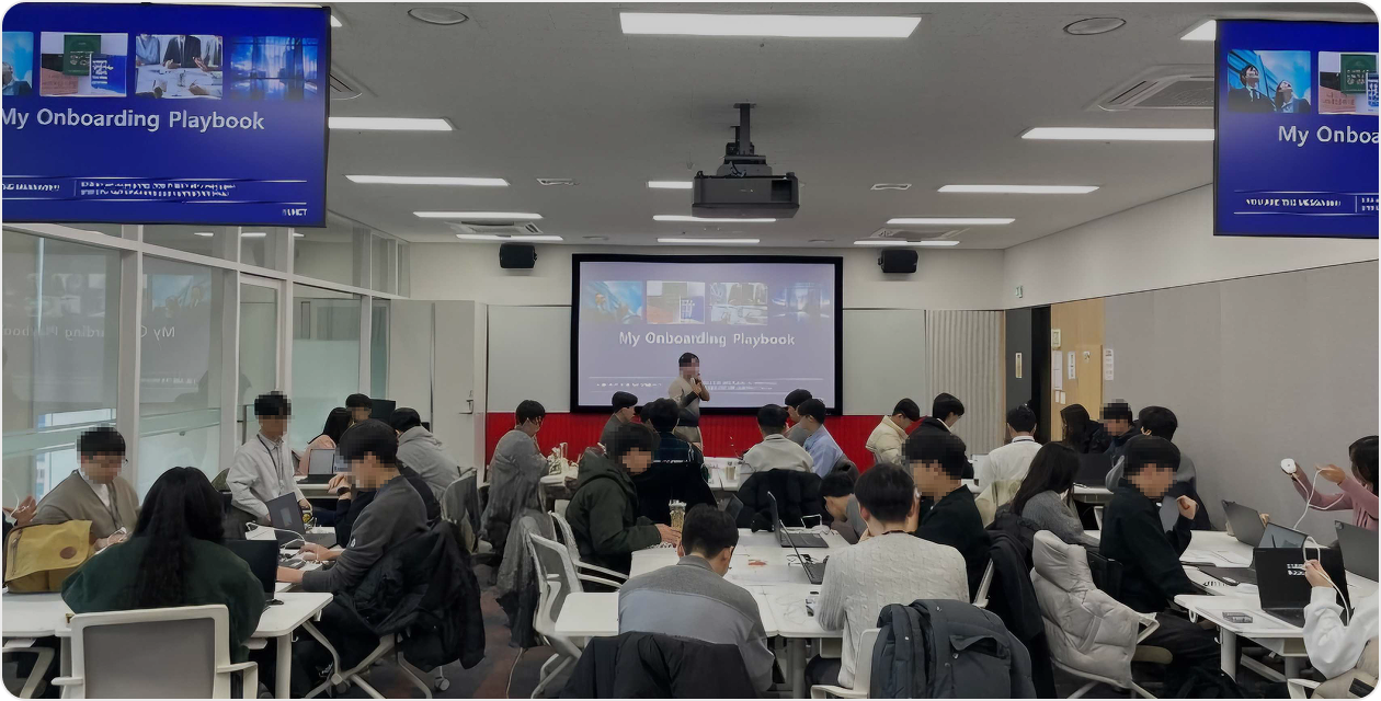 마침 휴넷에서 신규직원의 온보딩을 돕는 마이 온보딩 플레이북 솔루션이 출시되어 우리 회사에 맞게 커스터마이징을 진행했습니다. 신입사원들이 자연스럽게 우리 회사의 비전, 미션, 가치를 고민할 수 있도록 질문을 설계했고, 오프라인 집체 교육에서는 액티비티 중심의 워크샵으로 진행했습니다. 결과는 기대 이상이었습니다. 신입사원들은 각자의 답을 도출하고, 성찰하며 직장인으로서의 태도와 목표를 자연스럽게 습득했습니다. 특히 자신만의 생각이 담긴 실물 도서를 받는 과정에서 신선함과 재미를 느꼈다고 하더라고요. 단순한 지식 전달이 아니라, 참여자가 주체가 되어 스스로 고민하고 정리할 수 있는 경험이 된 셈입니다. 이번 경험을 통해, 교육 방식이 달라지면 신입사원의 몰입도와 참여도, 학습 성과까지 완전히 달라질 수 있다는 것을 다시 한번 느꼈습니다. |