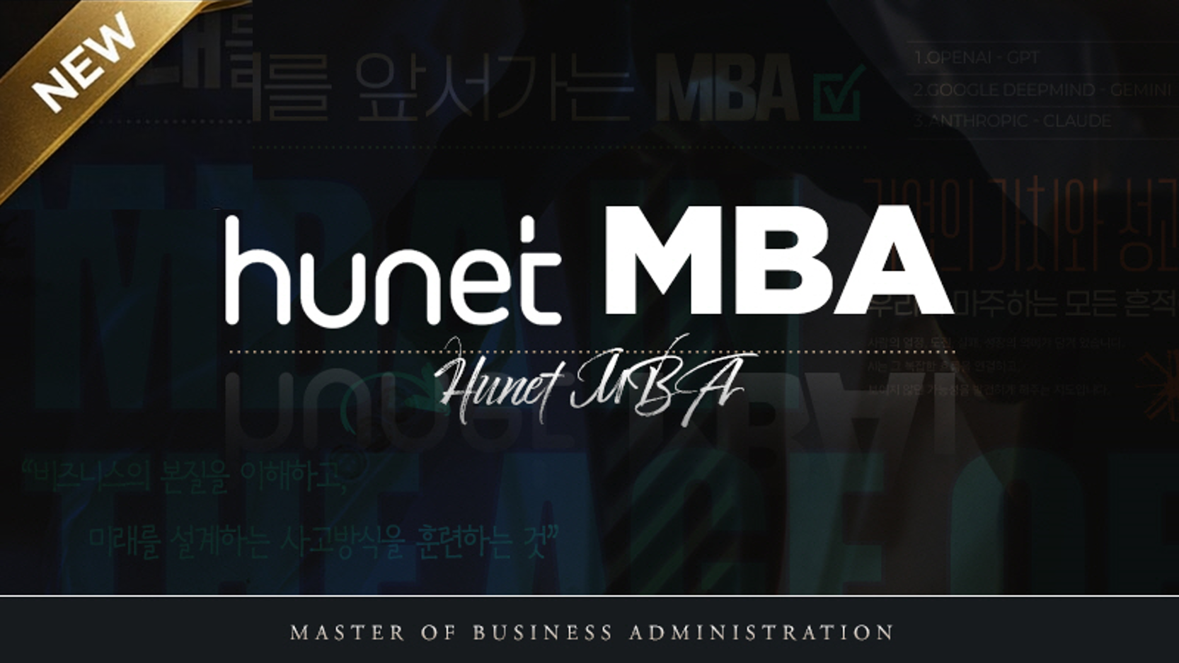 핵심인재 교육의 베스트 셀러, 휴넷 MBA가 7번째 업그레이드를 거쳐 AI Powered MBA로 진화했습니다. 경영 정통성을 갖춘 MBA 커리큘럼에 AI를 더해 균형 잡힌 의사결정 프레임을 완성해 보세요.