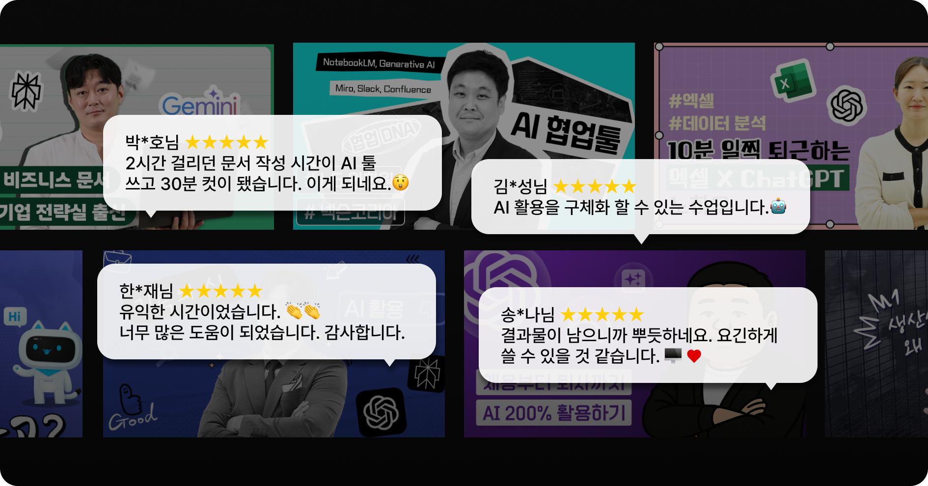 기존 교육 콘텐츠의 구조적 한계를 근본적으로 해결하며, 짧고 실전적이며 빠르게 업데이트 가능한, 그리고 무엇보다 배우자마자 바로 쓸 수 있는 새로운 형태의 AI 교육 콘텐츠를 지향합니다. |